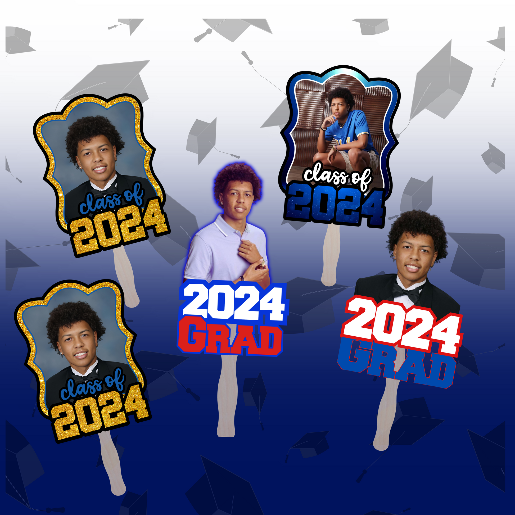 Stay cool in style with our customized hand fans! Perfect for any occasion, including the hot weather during graduation season. Make a statement with these hand fans that will surely turn heads.